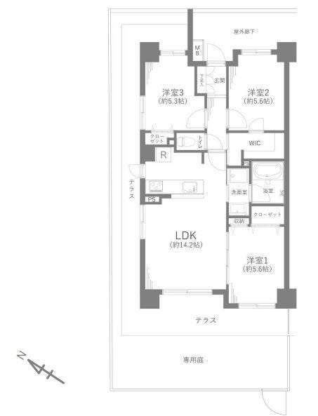 専有面積 壁芯 69.51㎡ 所在階 7階建/1階部分