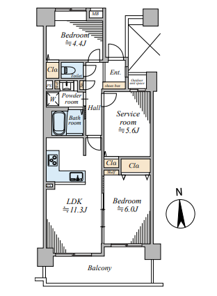 | 専有面積 | 壁芯 61.43㎡ | 所在階 | 7階建/6階部分 |